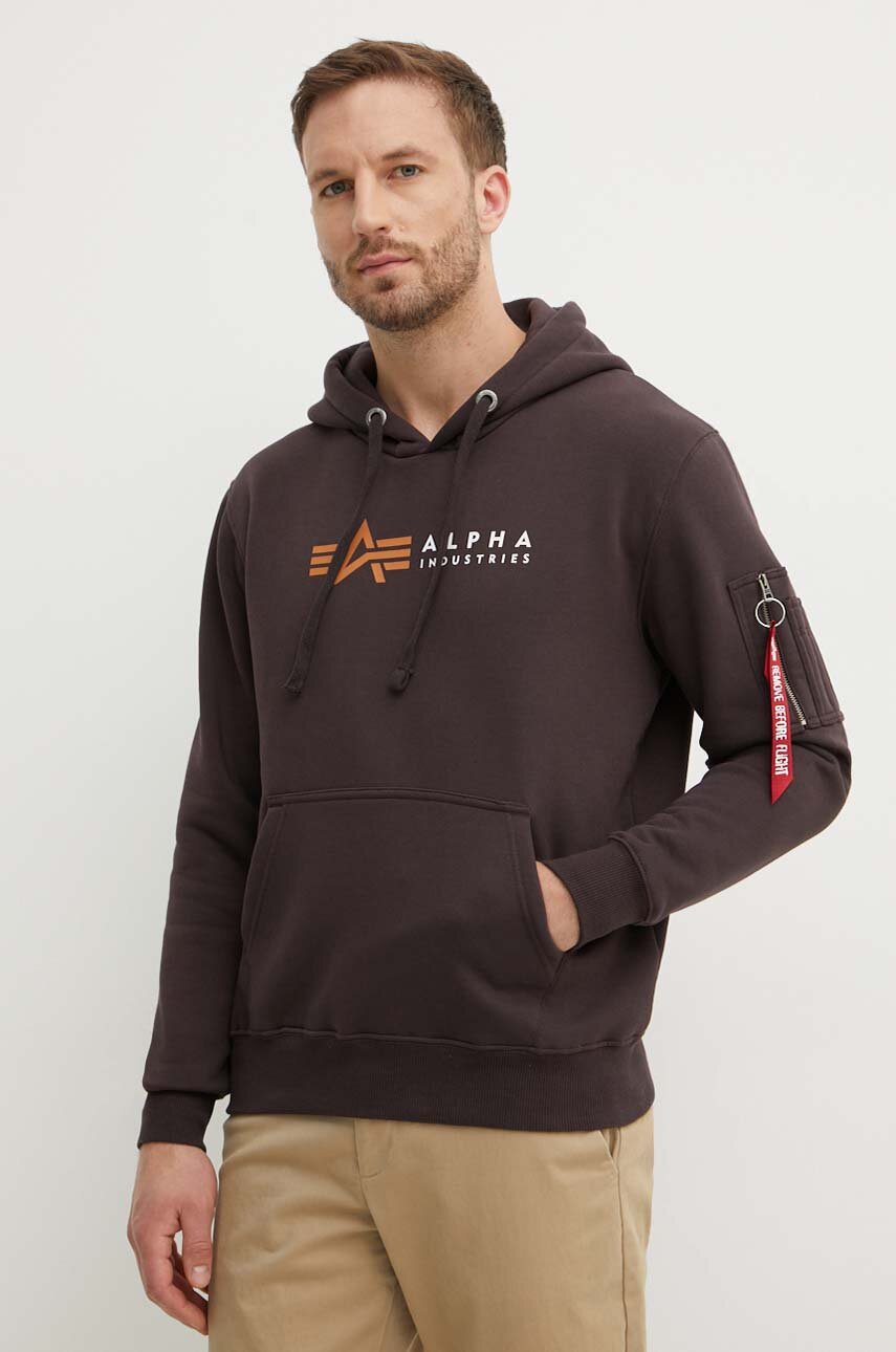 Alpha Industries sweatshirt Alpha Label Hoody men s brown color Very well made.