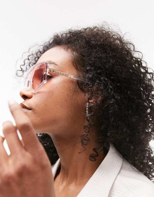 Topshop Occhiali da sole a mascherina trasparenti con lenti rosa Very well made.
