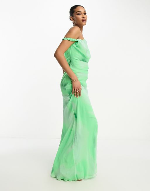 ASOS DESIGN Tall twist off shoulder maxi dress in blurred print in Very well made.