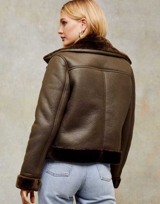Topshop faux leather aviator jacket in olive Very well made.