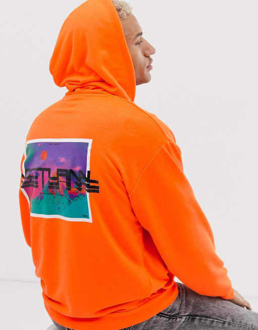 ASOS DESIGN oversized hoodie with back print in neon orange Very well made.
