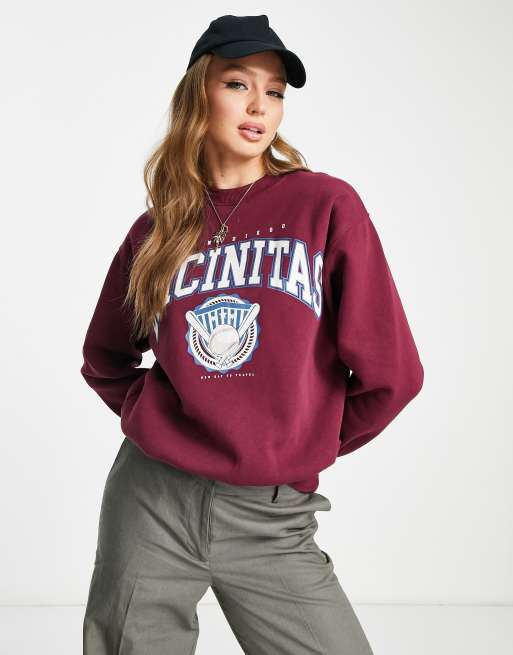 Pull Bear oversized slogan crewneck sweatshirt in burgundy Very well made.