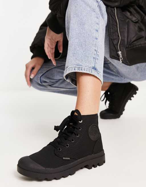 Palladium Pampa hi monochrome canvas trainers in black Very well made.