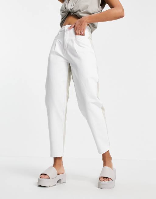 Bershka Pantaloni mom in tessuto misto bianco e beige gessato ASOS Very well made.