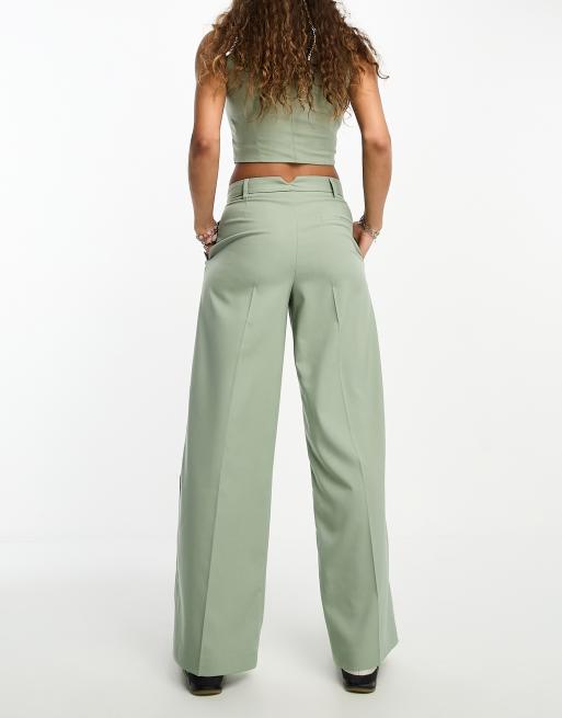 Bershka Pantaloni sartoriali a fondo ampio e a vita alta verde salvia in coordinato Very well made.
