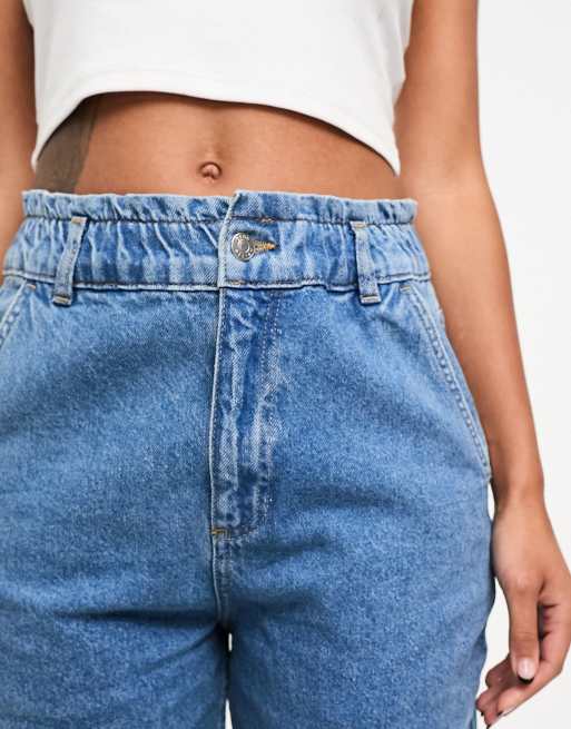 ASOS DESIGN paper bag waist mom jean in mid blue ASOS Very well made.
