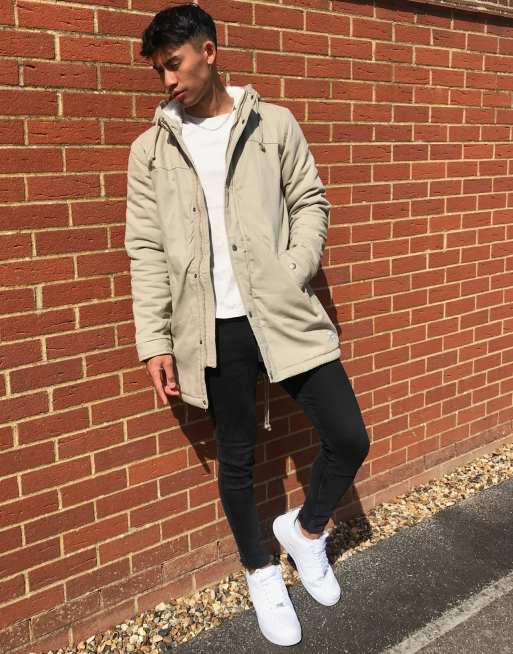 Only Sons parka with fleece lined hood in beige Very well made.