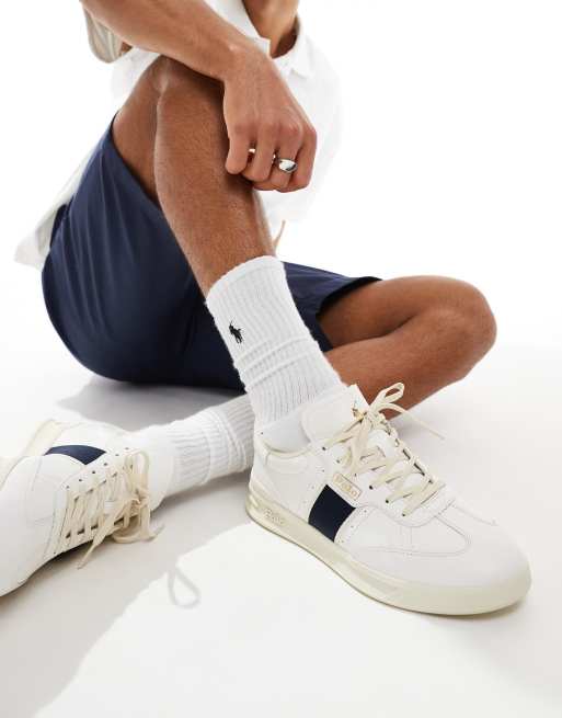 Polo Ralph Lauren Aera leather trainer in white with side stripes Very well made.