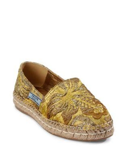 NEW PRADA Gold Brocade Fabric Cap Toe Jute Espadrilles FLATS EUR Very well made.