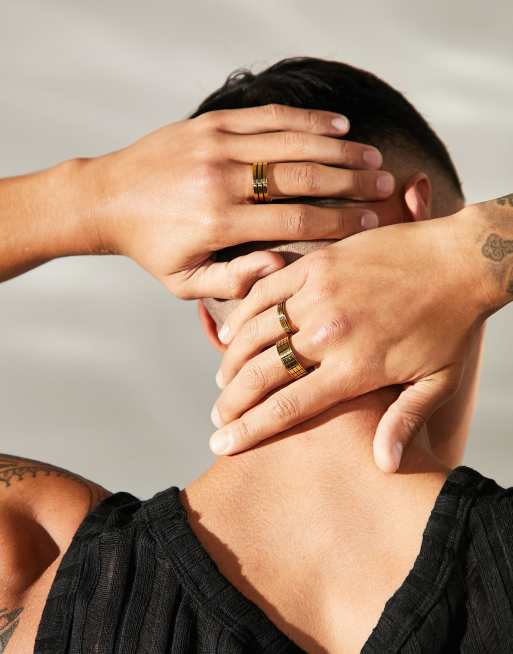 ASOS DESIGN Confezione da 3 anelli a fascia dorati e neri in Very well made.