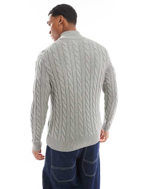 Polo Ralph Lauren icon logo half zip cotton cable knit jumper in grey marl Very well made.