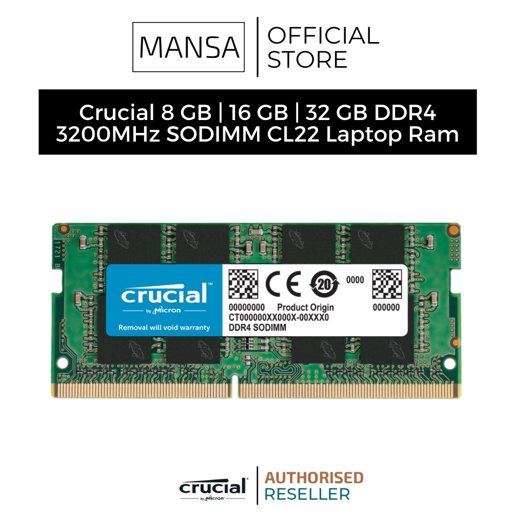 Crucial 8 GB 16 GB 32 GB DDR4 3200MHz SODIMM CL22 Laptop Ram Very well made.