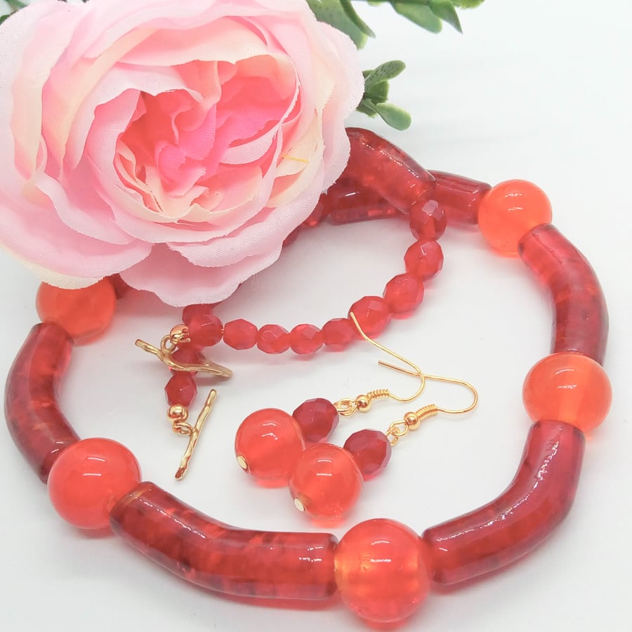 Red Crystal and Tube Bead Jewellery Set Red Be Folksy Very well made.