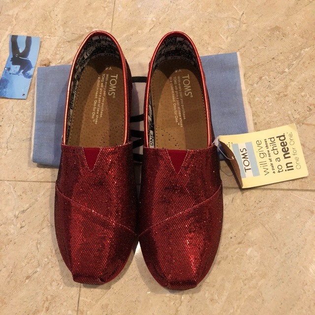 Sale New TOMS Red Glitter Slip on Sz.5Y 37 23.5 cm Shopee Very well made.