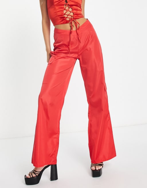 Street Swear Cargo Pants Women Hip hop Red Loose High Waist Very well made.