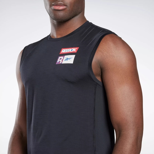 REEBOK MEN S TRAINING SLEEVELESS TECH BLACK SINGLET INSPORT Very well made.