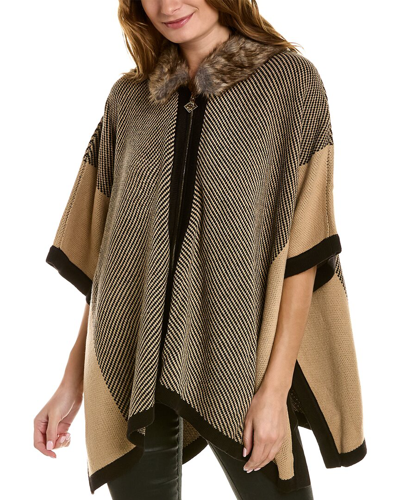 Anne Klein Faux fur Collar Zip front Poncho Sweater In Brown Very well made.