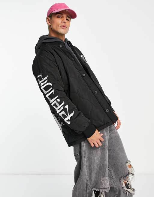 RIPNDIP mystic nerm quilted bomber jacket in black with sleeve and back print Very well made.
