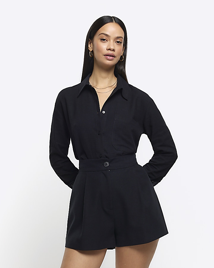 Black linen blend high waisted shorts River Island Very well made.