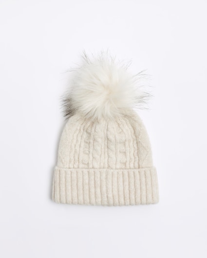 River Island Double Faux Fur Pom Pom Beanie Hat Very well made.