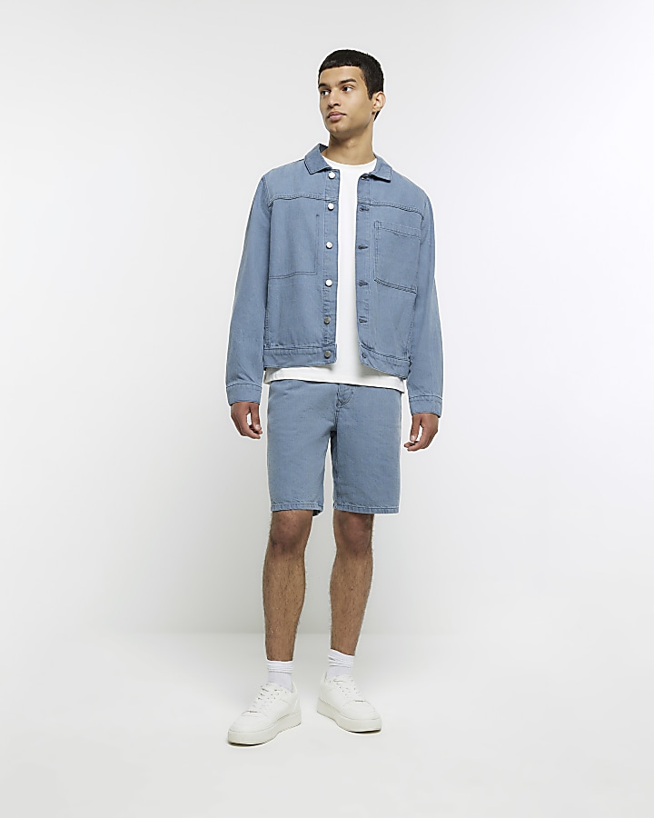 River Island paperbag waist high rise denim shorts in medium blue Very well made.