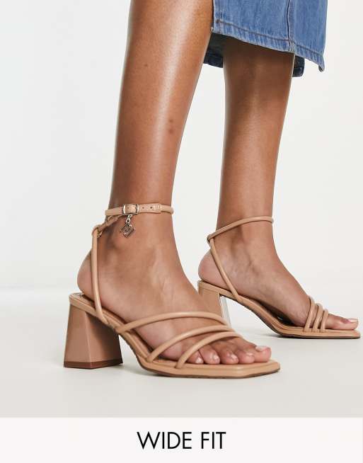 River Island Wide Fit Sandalen mit Absatz und r hrenf rmigen Riemchen in Beige breite Passform Very well made.