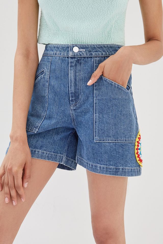 Carleen Crochet Denim Shorts Anthropologie Very well made.