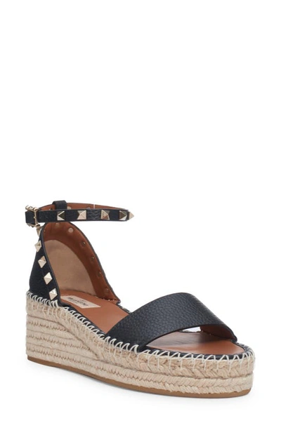 Valentino Garavani Rockstud Espadrille Platform Sandal In Black Very well made.