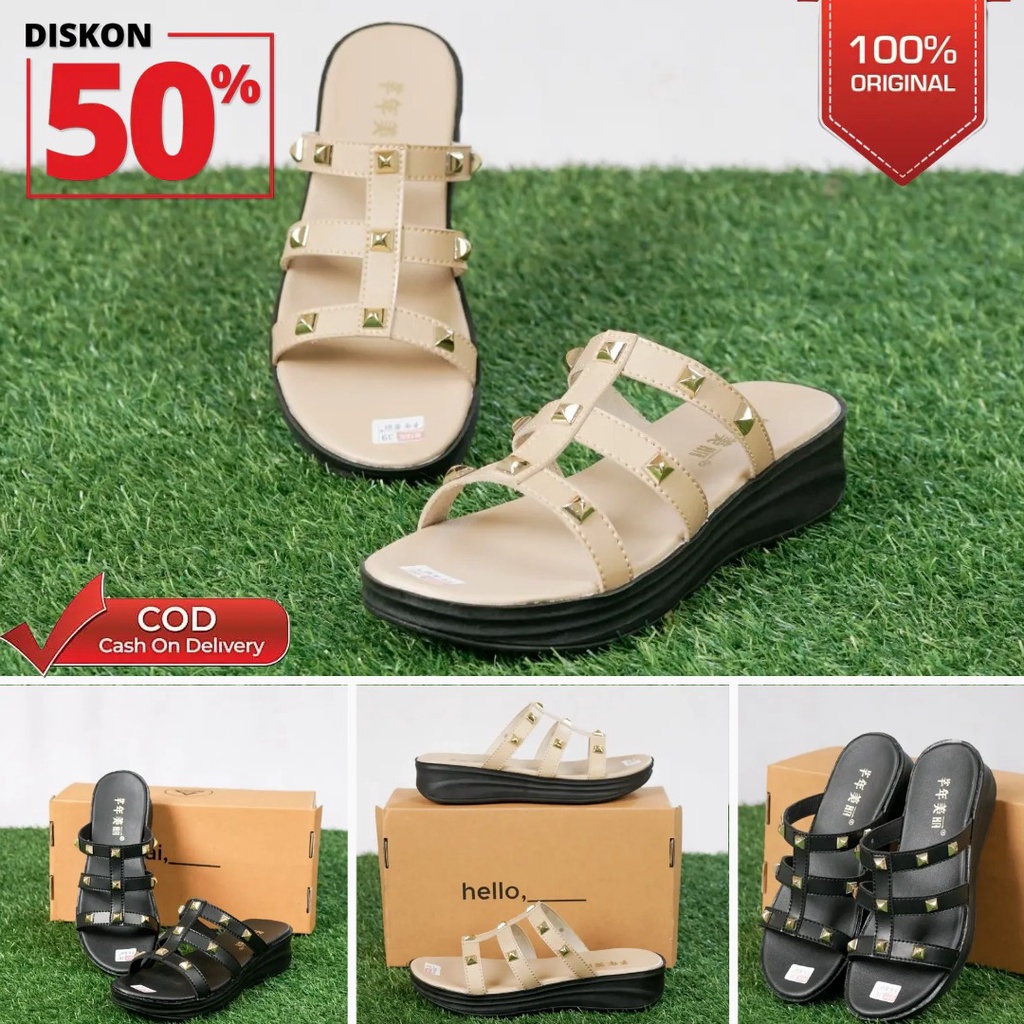 KUROTA SHOP SEPATU SANDAL WANITA SEPATU SANDAL WANITA WEDGES MODEL SILANG DUA TALI STRAP BELAKANG HAK TINGGI SOLE 3 CM SPATU SENDAL GUNUNG SERIES L456 Very well made.