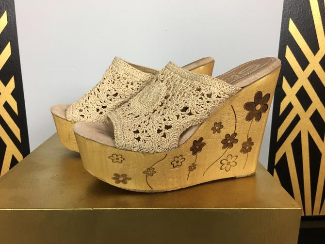 sbicca california 1990s platforms wood wedges vintage sandals Very well made.