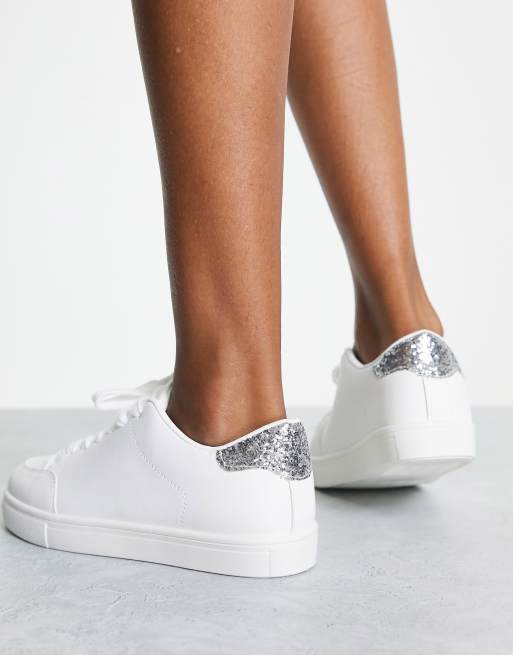 London Rebel Sneakers da sposa minimal a pianta larga stringate bianche e argento Very well made.
