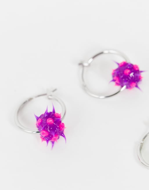 ASOS DESIGN pack of 2 hoop earrings with rubber spikey balls in silver tone Very well made.
