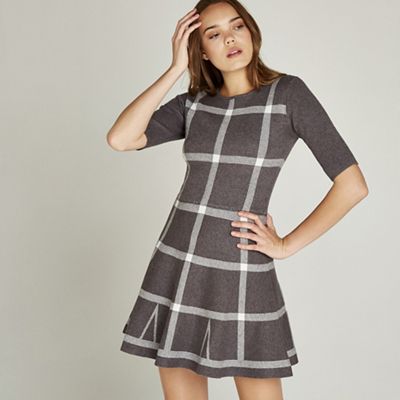 Apricot Grey Window Check Skater Dress XS Women s Dresses Very well made.