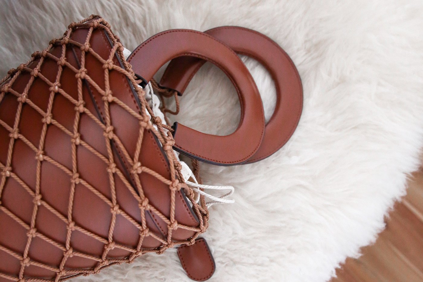 Staud Moreau two tone macram and leather bucket bag Very well made.