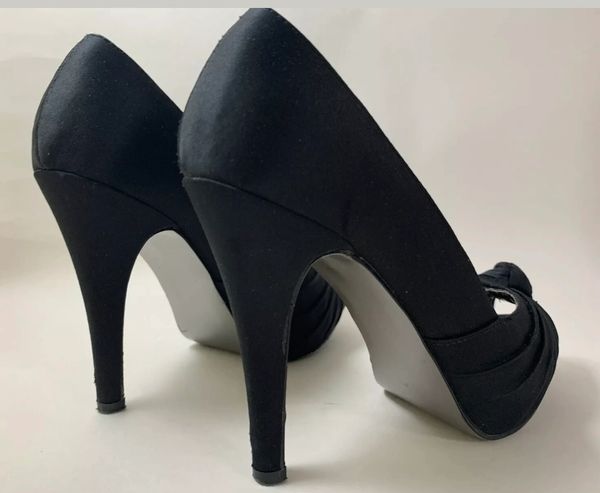 Steve Madden Black Satin Knotted Peep Toe 4 Stiletto Heel Court Very well made.