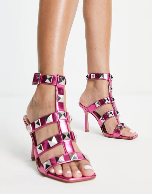 Steve Madden Capri studded heeled sandals in bright fuschia Very well made.