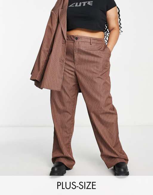 Noisy May Curve straight trousers co ord in tan pinstripe Very well made.