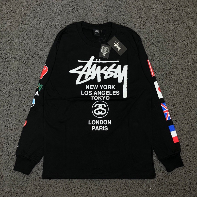 Jual LONGSLEEVE STUSSY WORLD TOUR FLAG FULL PRINT SLEEVES PREMIUM Very well made.