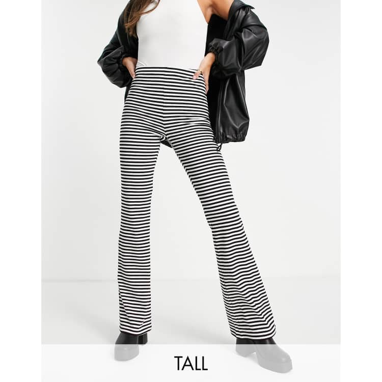 Pieces Tall high waisted flared trousers in black white stripe Very well made.