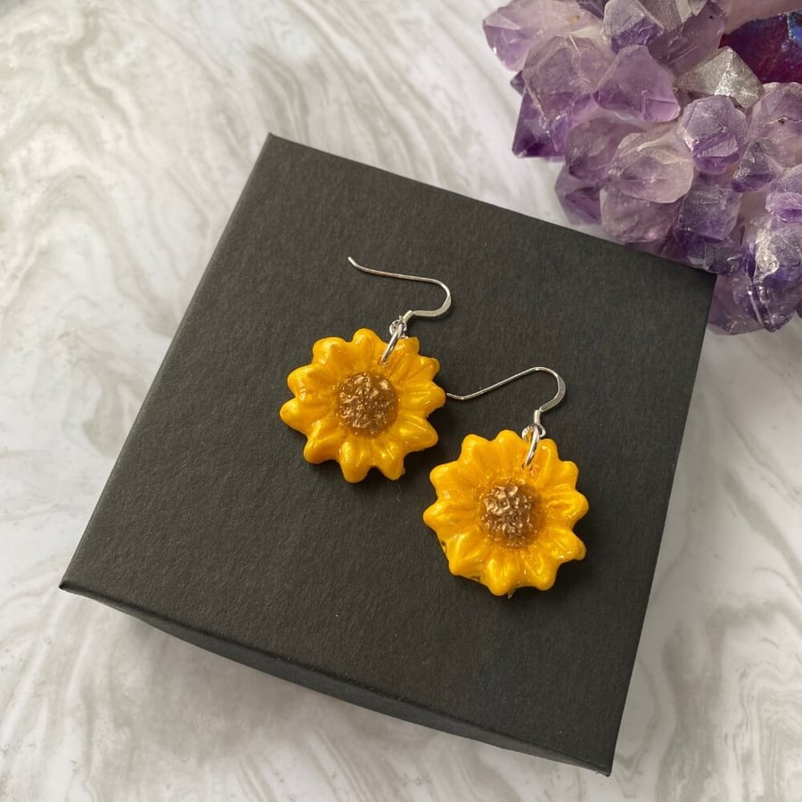 Sunflower earrings hand painted polymer clay an Folksy Very well made.