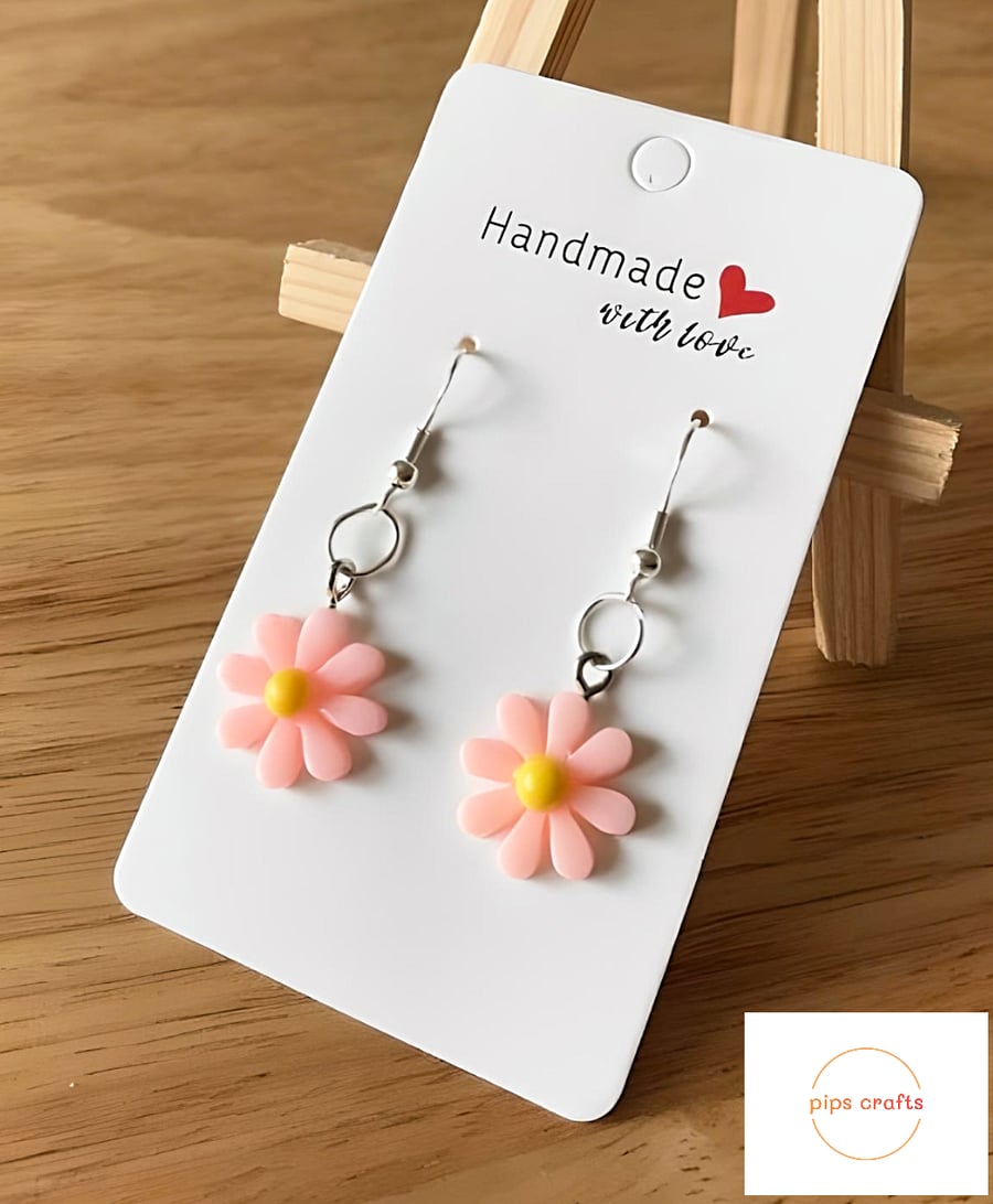 Cute Daisy Earrings Light Pink Yellow Folksy Very well made.