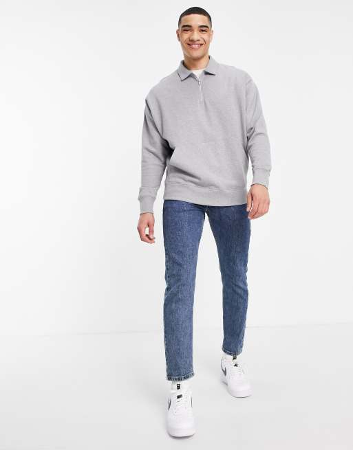 ASOS DESIGN oversized half zip sweatshirt with collar neck in grey Very well made.