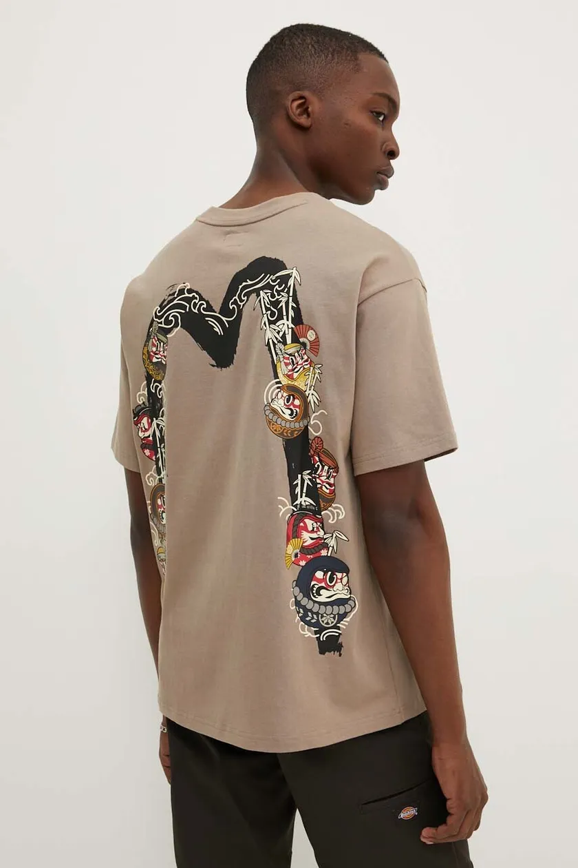 Evisu cotton t shirt Kumadori Daruma Double Daicock Printed men s Very well made.