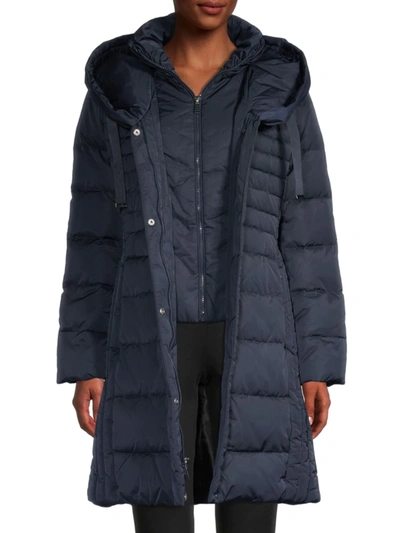 Tahari Womens Petite Mia Bibbed Hooded Down Puffer Coat Dark Slate Very well made.