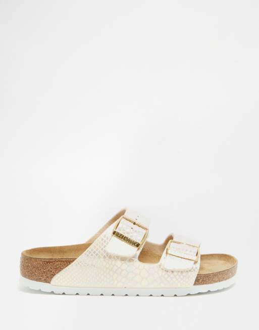 Birkenstock Arizona Shiny Python Birko Flor Sandal in Cream Very well made.