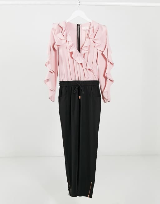 Ted Baker Bethane contrast ruffle jumpsuit in pink Very well made.