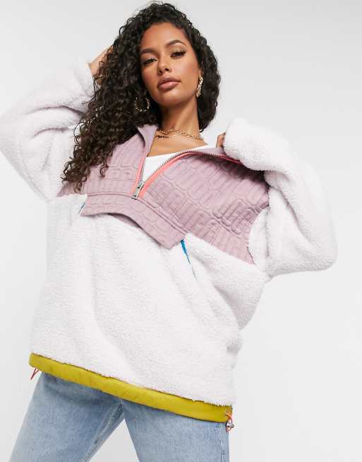 UGG Iggy teddy half zip pullover jacket in pink salt multi Very well made.