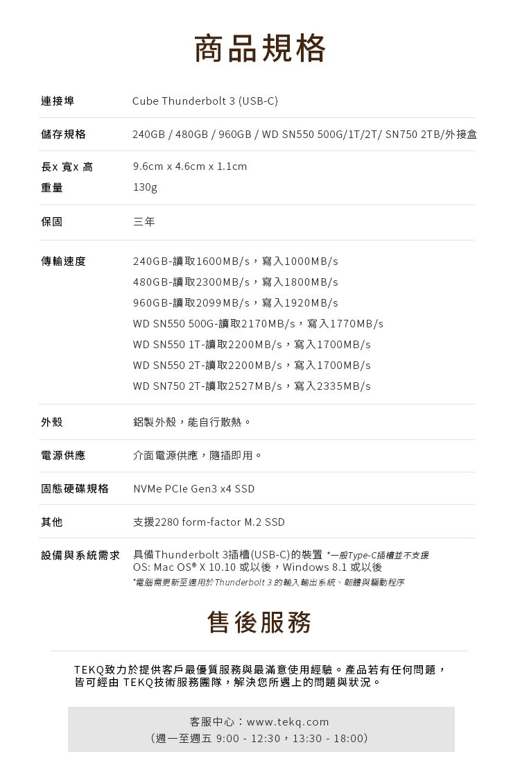 TEKQ CUBE Thunderbolt 3 M.2 SSD PChome 24h Very well made.