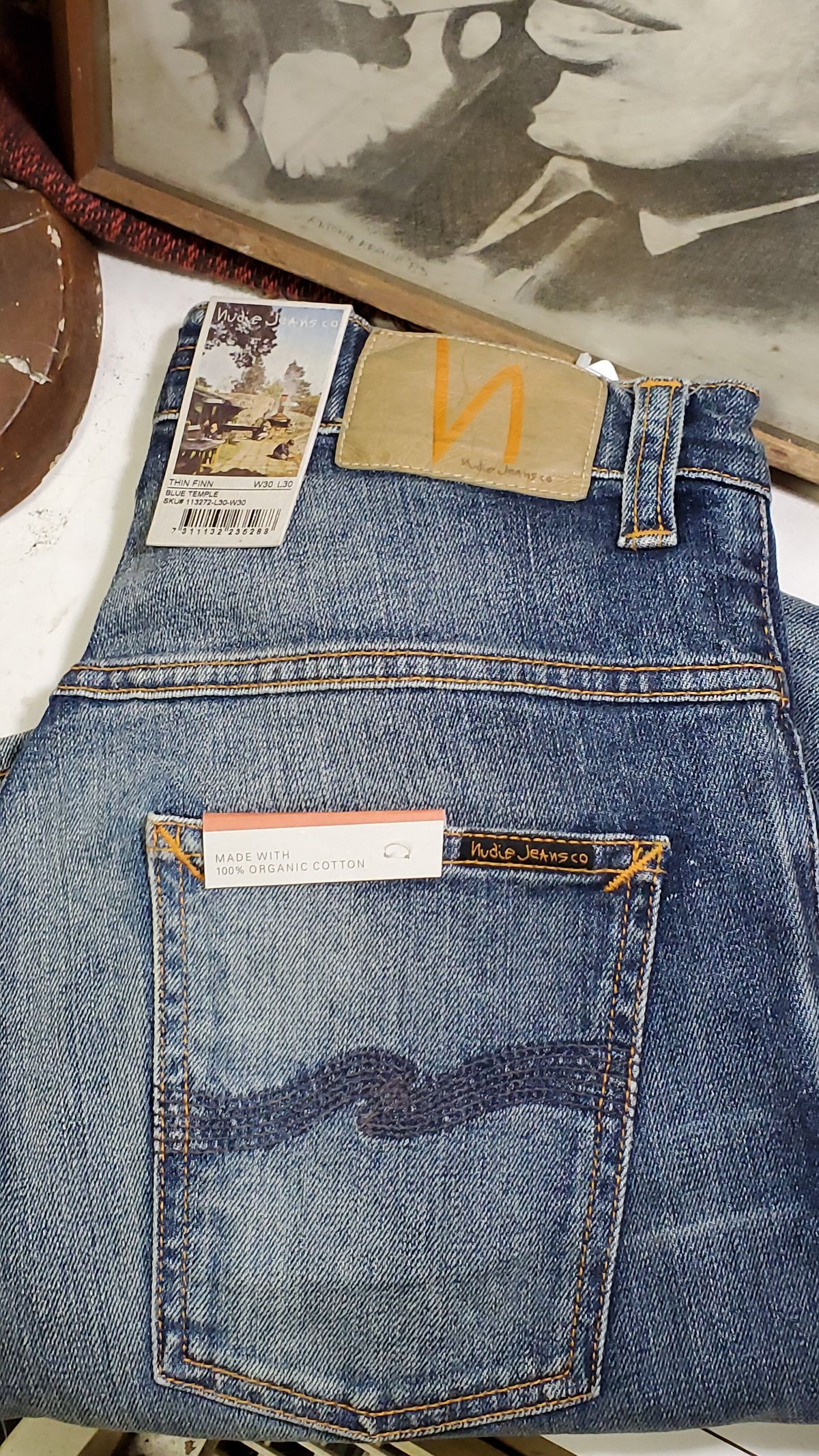 Nudie Thin Finn Mens Slim Straight Fit Organic Cotton Stretch Jeans Greyblue Very well made.