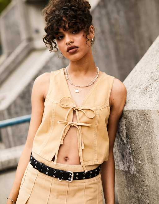 ASOS DESIGN tie front waistcoat co ord in stone Very well made.